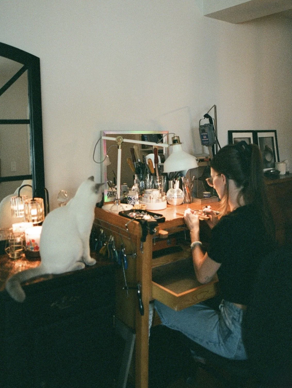 Blythe Cronyn is a Canadian designer and jeweller working from her home atelier in Toronto, shared by her husband, son, their cat Sparks and many, many plants.
